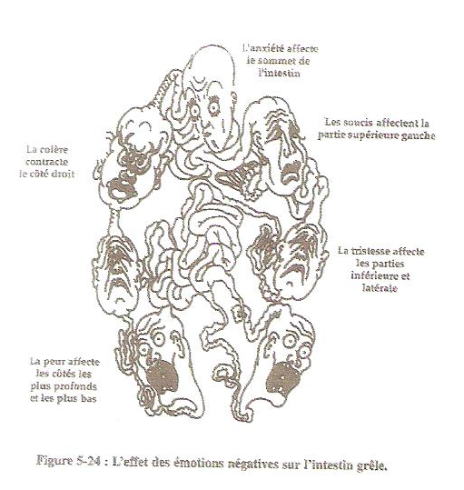 Pourquoi le ventre ?... tout est lié : la colère ou un trop-plein d'émotion par exemple peut perturber l'énergie du foie et entraver la bonne digestion. Les douleurs abdominales sont issues d'un chamboulement de l'énergie du foie. Une mauvaise alimentation fait barrage au mouvement de l'énergie dans l'estomac.