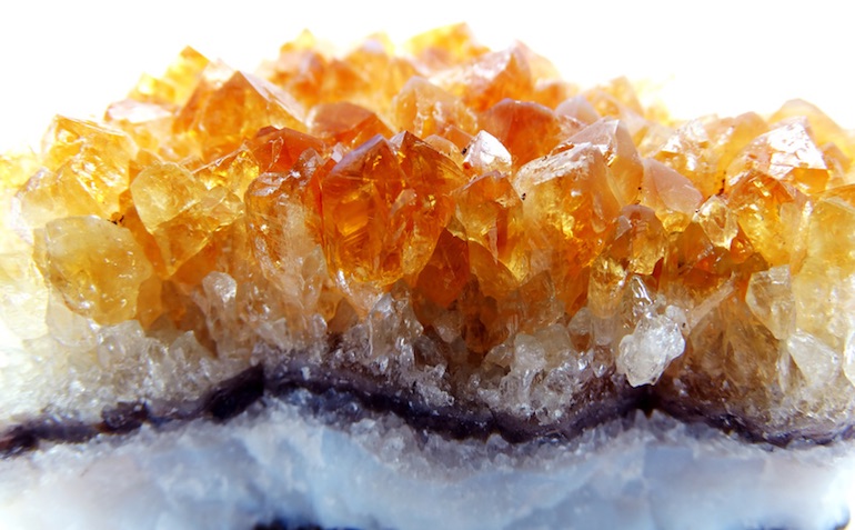 Citrine: Selon la tradition la citrine aurait un rôle bénéfique pour aider à surmonter le manque d'entrain, la fatigue morale. Redonne le courage après une longue maladie : permet de se « remettre sur pieds » plus rapidement. Effet tonifiant.
