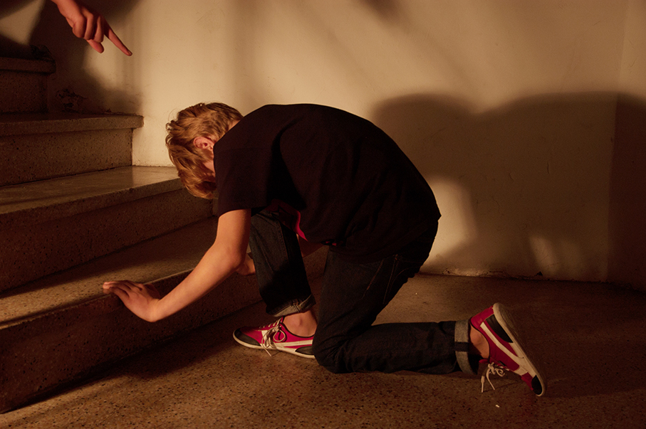 Lorsque je suis mis à genoux, je me sens coupé, plié, incapable de faire quoique ce soit. Dépassé par les événements, je ne sais pas comment réagir et j'observe la situation bouche bée. Se mettre à genoux, pour se plier à la volonté de l'autre. Pire encore, je peux décider de me mettre à genoux, pour implorer, supplier. Je suis tellement incapable de bouger, d'avancer que je deviens tributaire de la volonté entière de l'autre.