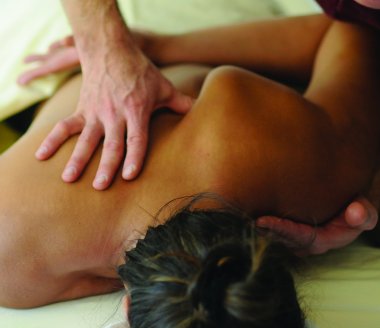 Le praticien qui masse en utilisant la paume de la main se place généralement debout face au patient et a baisse son épaule et son coude de manière à être au niveau de la partie du corps à masser.